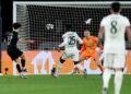 He struck a slow shot between the legs of Carneiro and just wide of the outstretched right leg of Marques into the net.